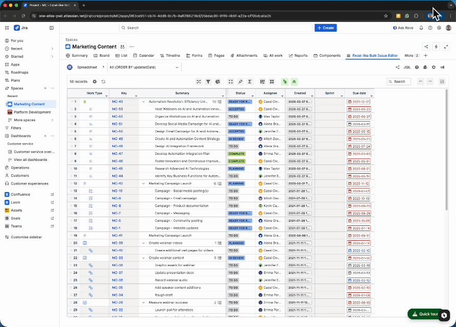 Large Jira datasets have always been the hardest to manage in bulk. With lazy loading and grid optimizations in 6.2, spreadsheets with thousands of issues load dramatically faster. You can scroll, filter, and edit without waiting for the full dataset to render. For teams running 31,000+ issues in a single project, the difference is immediate.